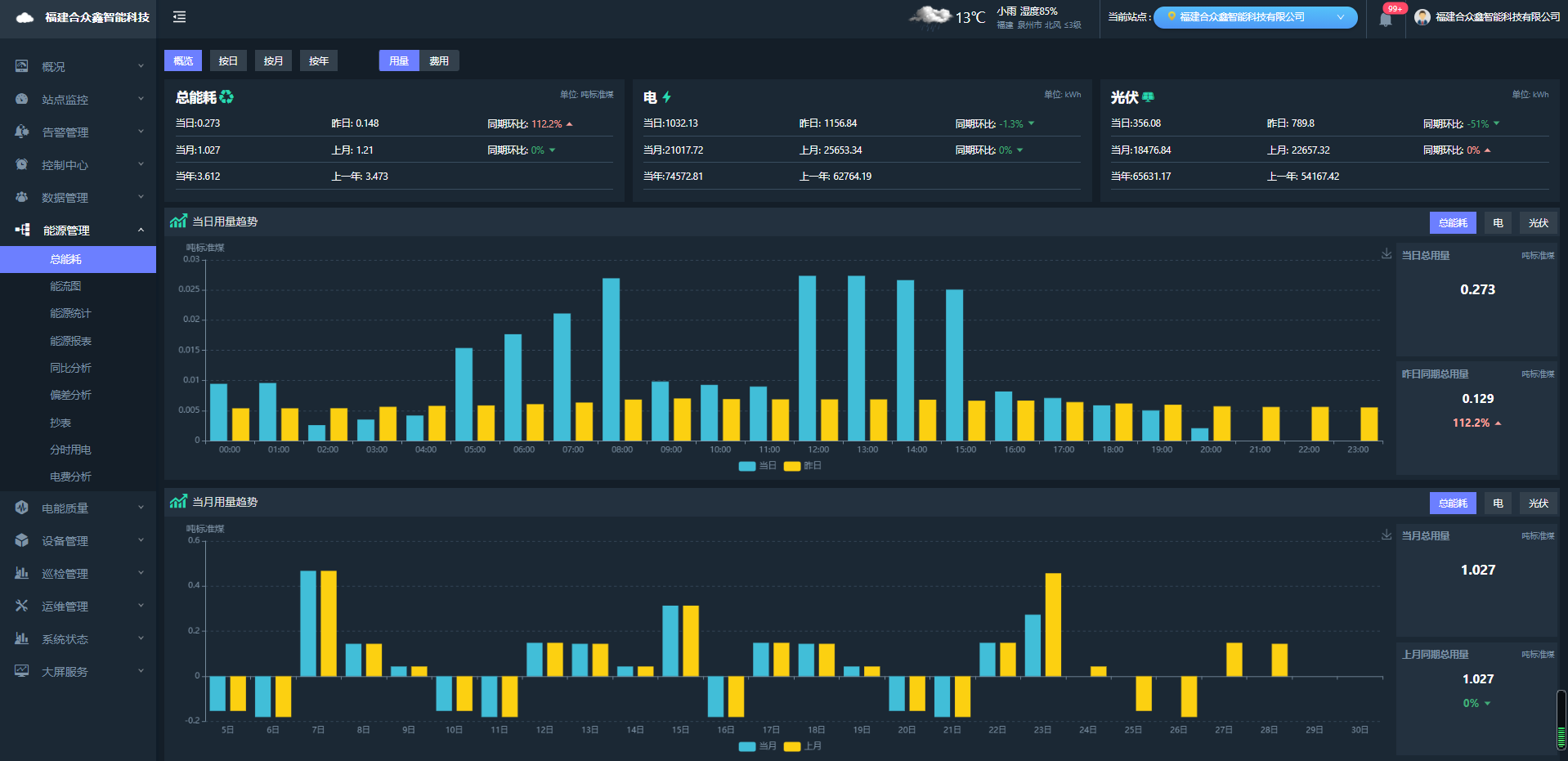 支持任意时段的综合能耗统计,,,各类能源介质用量占比、、趋势